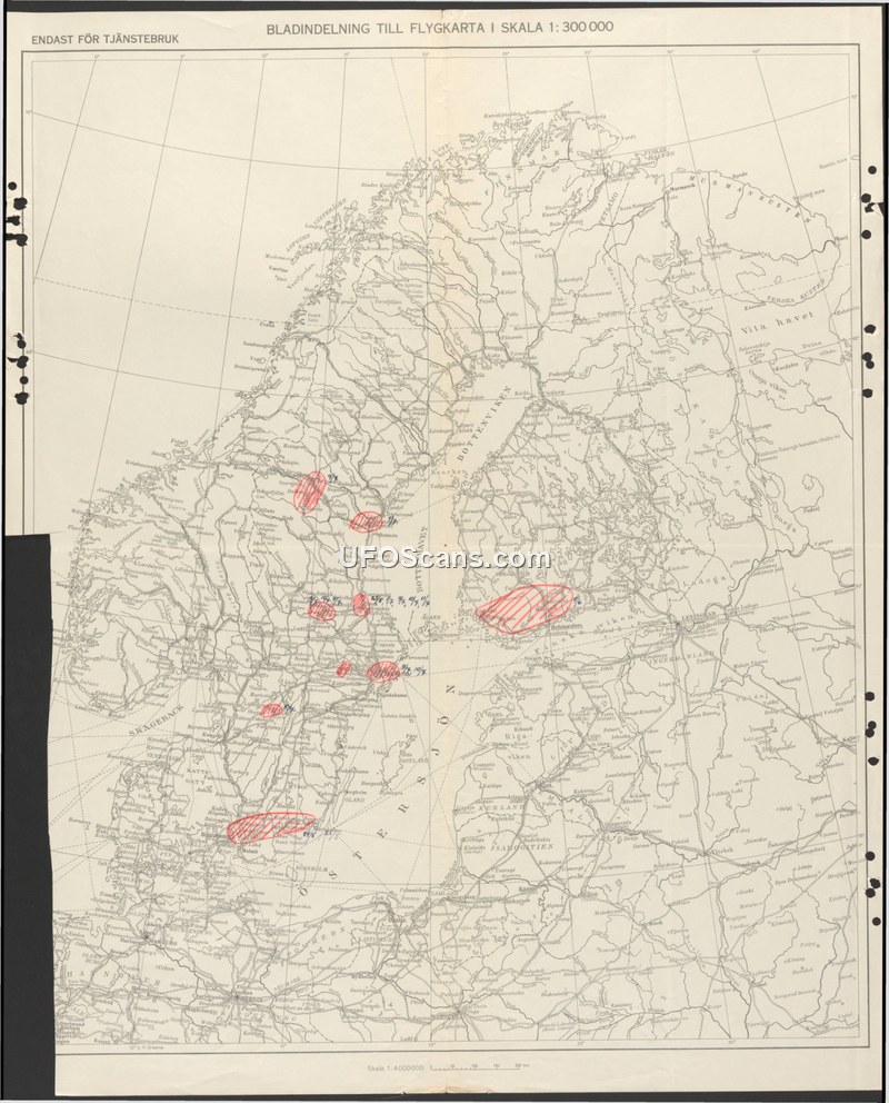 This document is a map sheet index for aeronautical charts at a scale of 1:300,000, marked for official use only ('ENDAST FÖR TJÄNSTEBRUK'). The map covers Sweden and surrounding territories, including parts of Norway, Finland, the Baltic states, and northern Europe. The document contains handwritten red markings, including circles and dates, which appear to indicate specific areas of interest or activity. These annotations include dates such as '9/6', '17/6', '25/6', '26/6', '27/6', '28/6', '29/6', '30/6', '1/7', '2/7', '3/7', '4/7', '5/7', '6/7', '7/7', '8/7', '9/7', '10/7', '11/7', '12/7', '13/7', '14/7', '15/7', '16/7', '17/7', '18/7', '19/7', '20/7', '21/7', '22/7', '23/7', '24/7', '25/7', '26/7', '27/7', '28/7', '29/7', '30/7', '31/7', '1/8', '2/8', '3/8', '4/8', '5/8', '6/8', '7/8', '8/8', '9/8', '10/8', '11/8', '12/8', '13/8', '14/8', '15/8', '16/8', '17/8', '18/8', '19/8', '20/8', '21/8', '22/8', '23/8', '24/8', '25/8', '26/8', '27/8', '28/8', '29/8', '30/8', '31/8', '1/9', '2/9', '3/9', '4/9', '5/9', '6/9', '7/9', '8/9', '9/9', '10/9', '11/9', '12/9', '13/9', '14/9', '15/9', '16/9', '17/9', '18/9', '19/9', '20/9', '21/9', '22/9', '23/9', '24/9', '25/9', '26/9', '27/9', '28/9', '29/9', '30/9', '1/10', '2/10', '3/10', '4/10', '5/10', '6/10', '7/10', '8/10', '9/10', '10/10', '11/10', '12/10', '13/10', '14/10', '15/10', '16/10', '17/10', '18/10', '19/10', '20/10', '21/10', '22/10', '23/10', '24/10', '25/10', '26/10', '27/10', '28/10', '29/10', '30/10', '31/10', '1/11', '2/11', '3/11', '4/11', '5/11', '6/11', '7/11', '8/11', '9/11', '10/11', '11/11', '12/11', '13/11', '14/11', '15/11', '16/11', '17/11', '18/11', '19/11', '20/11', '21/11', '22/11', '23/11', '24/11', '25/11', '26/11', '27/11', '28/11', '29/11', '30/11', '1/12', '2/12', '3/12', '4/12', '5/12', '6/12', '7/12', '8/12', '9/12', '10/12', '11/12', '12/12', '13/12', '14/12', '15/12', '16/12', '17/12', '18/12', '19/12', '20/12', '21/12', '22/12', '23/12', '24/12', '25/12', '26/12', '27/12', '28/12', '29/12', '30/12', '31/12'. The document serves as a reference for aeronautical navigation and does not contain descriptive text regarding UAP or other phenomena beyond the geographic index and the handwritten temporal annotations.