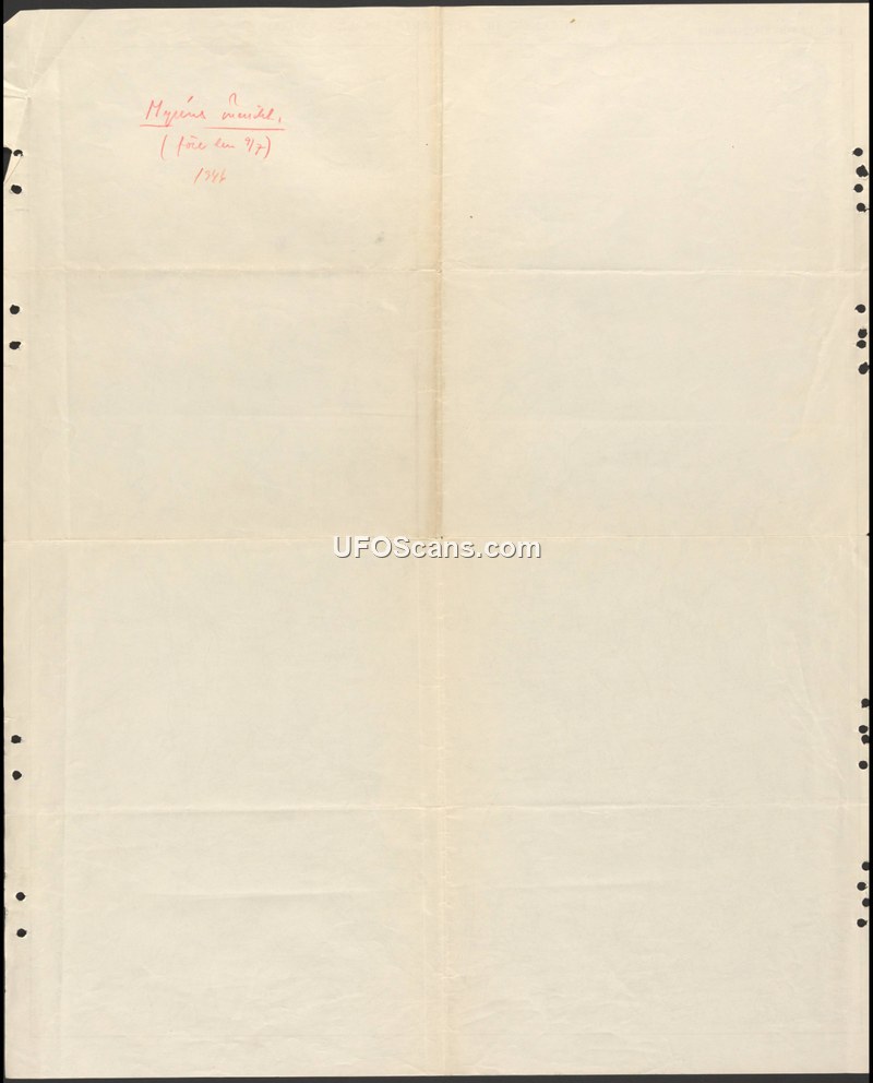 The document consists of a single page containing a brief, handwritten note in red ink. The text appears to read 'Myens [illegible], (force [illegible] 9/7), 1946'. Due to the illegibility of the handwriting and the lack of surrounding context, no further information can be determined regarding the nature or purpose of this note.