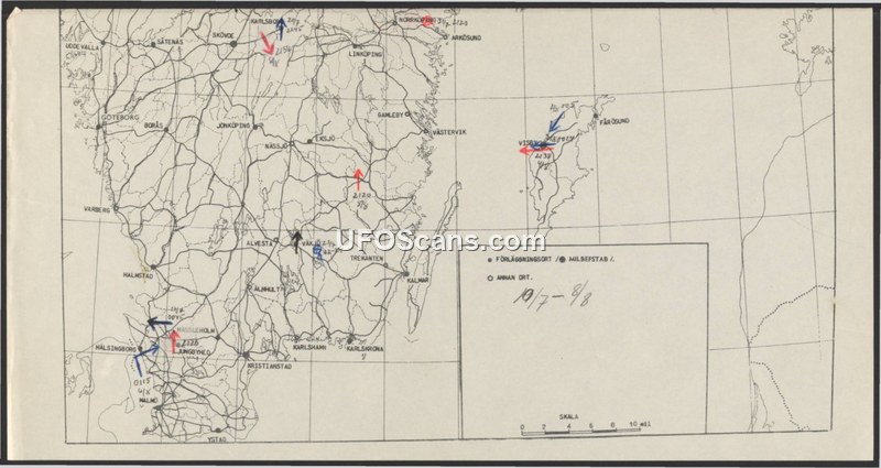 Map of Military Activity and Sightings, Sweden, 19/7 - 8/8