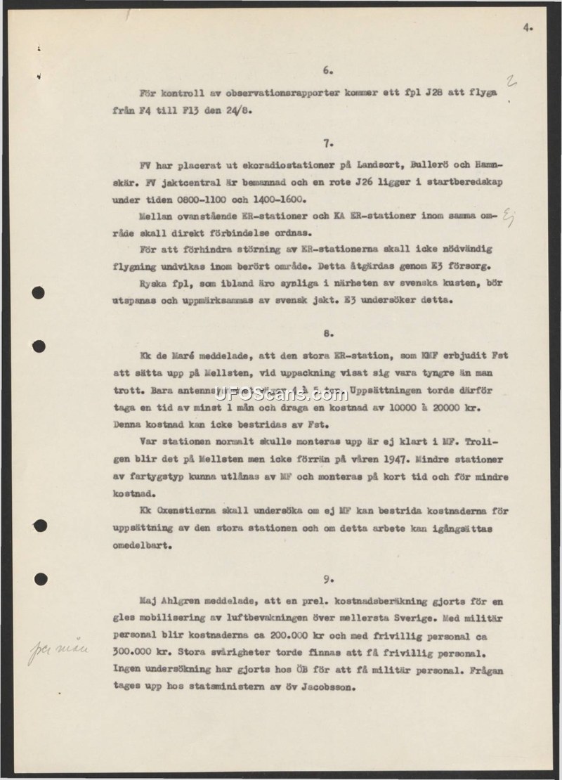 This document details Swedish military air surveillance operations, including radar station deployment, monitoring of foreign aircraft, and the financial challenges of personnel mobilization.