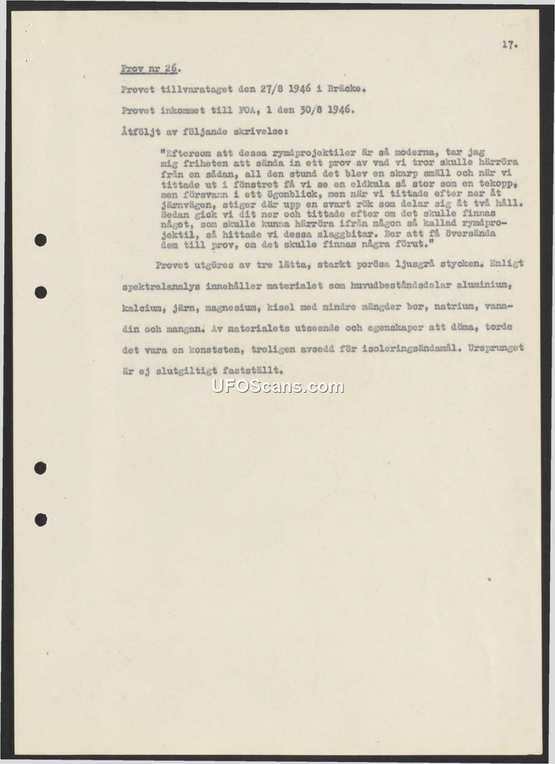 Prov nr 26 — Bräcke Sighting and Material Analysis, 1946