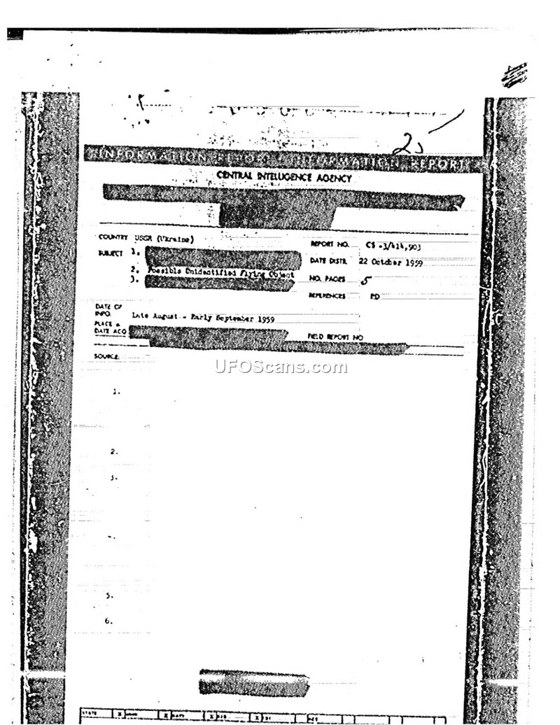 A CIA report from 1959 details a brief sighting of a luminous orange ball in the Ukrainian SSR. The object was observed in flight from a train and vanished shortly thereafter.