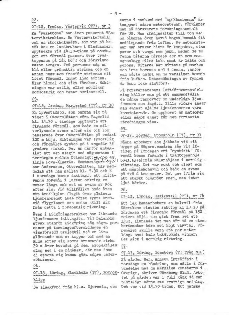 Press Compilation of Ghost Rocket Sightings and Investigations, July 1946