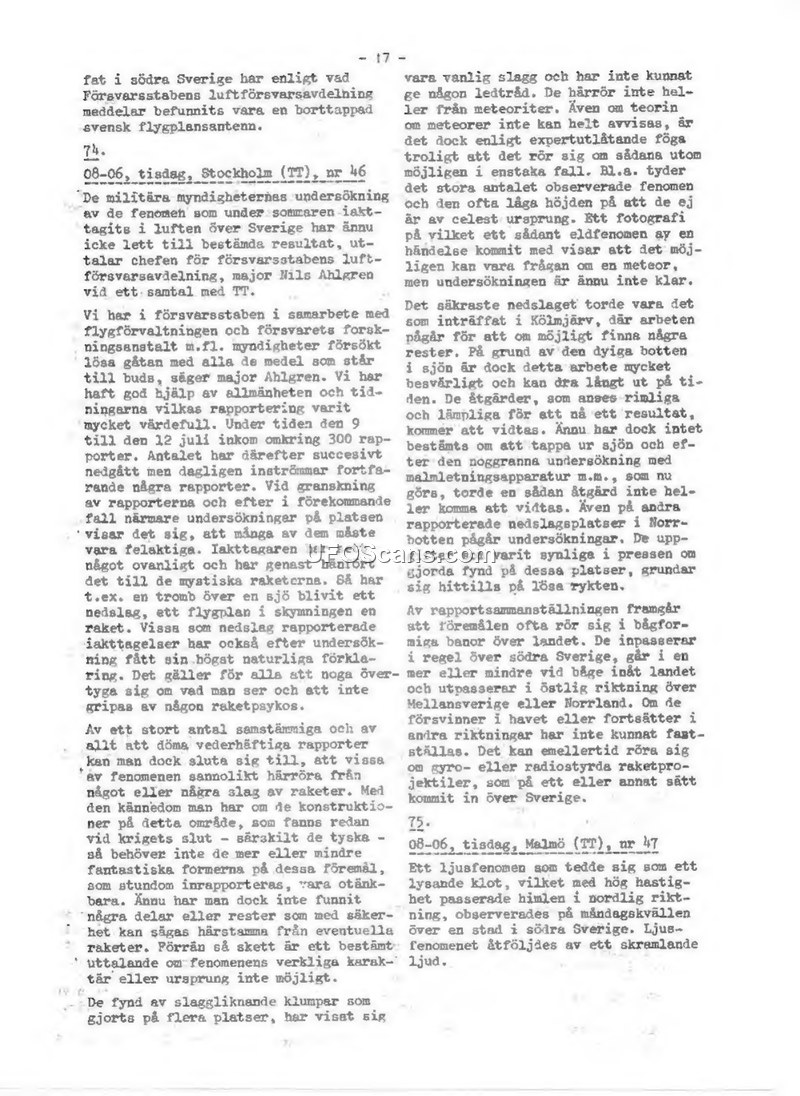 Press Compilation: Military Investigation of Aerial Phenomena in Sweden, August 1947