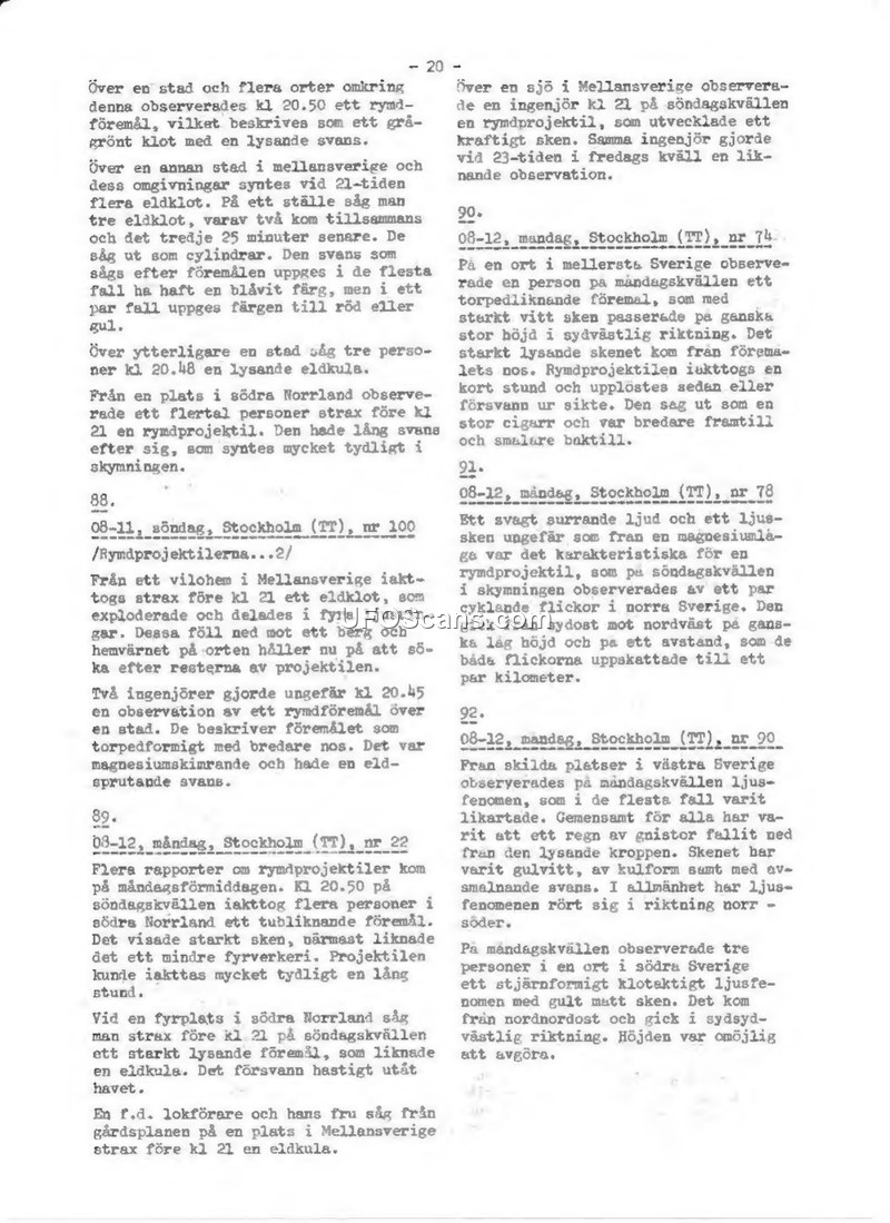 Compilation of Reports on Space Projectiles in Sweden, August 1954