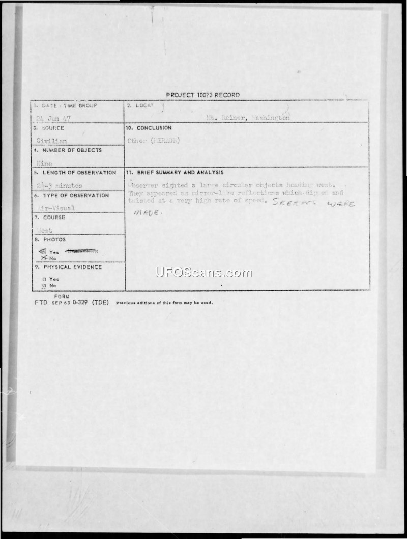 Project 10073 Record: Incident #17 - Mt. Rainier, Washington, 24 June 1947