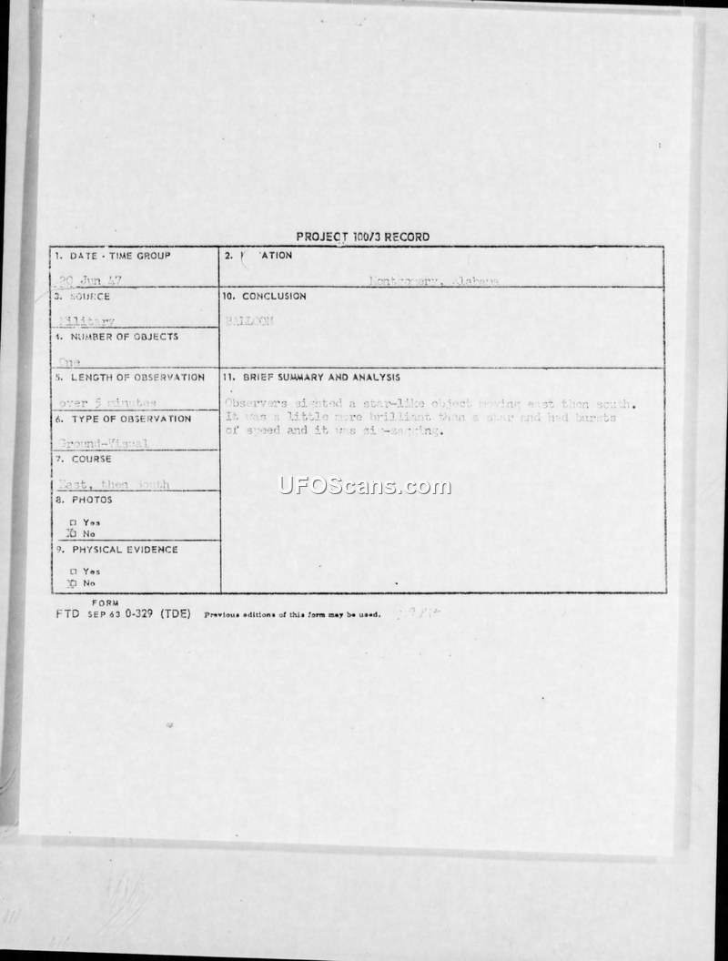 Incident #91 involved a sighting of a brilliant, zig-zagging light by four military officers over Maxwell Field in 1947. While observers noted the object's behavior defied aerodynamic laws, the Air Weather Service later concluded it was likely a weather balloon.