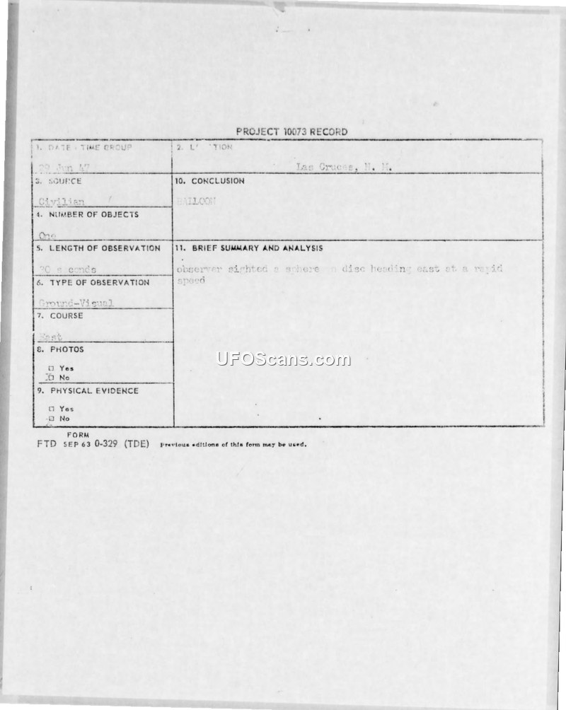 Incident #90 Sighting Report — Las Cruces, New Mexico, 29 June 1947