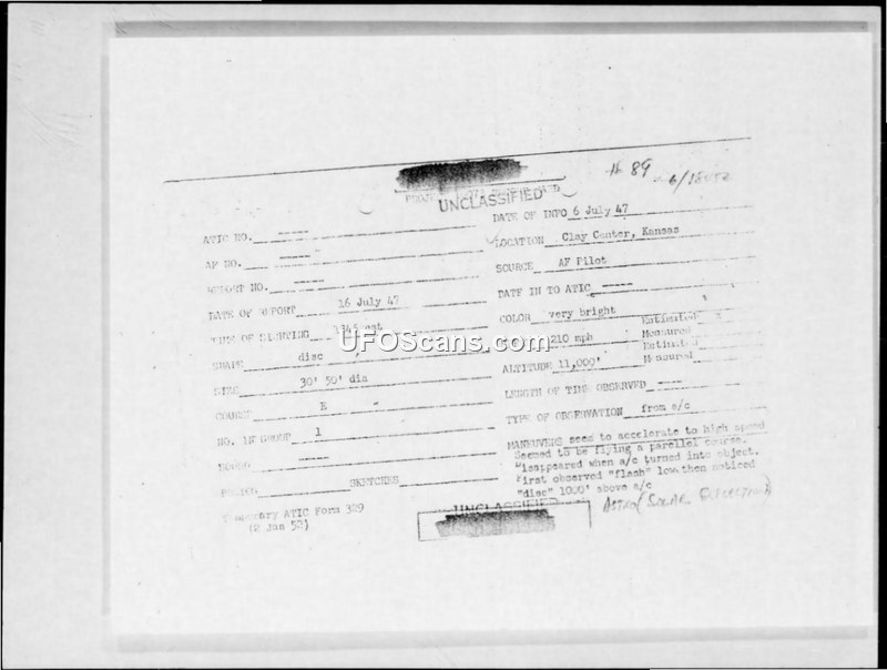 Incident #89 — 100 mi. W of Kansas City, Missouri — 6 July 1947