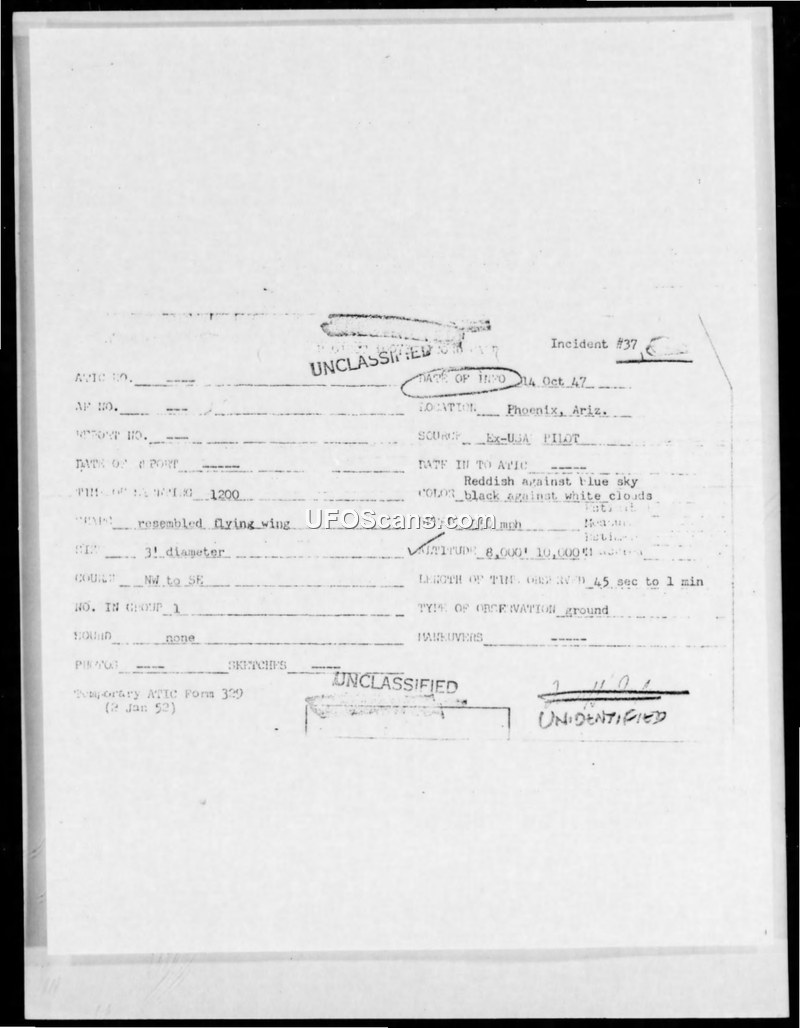 Incident #37 Sighting Report — Phoenix, Arizona, 14 October 1947