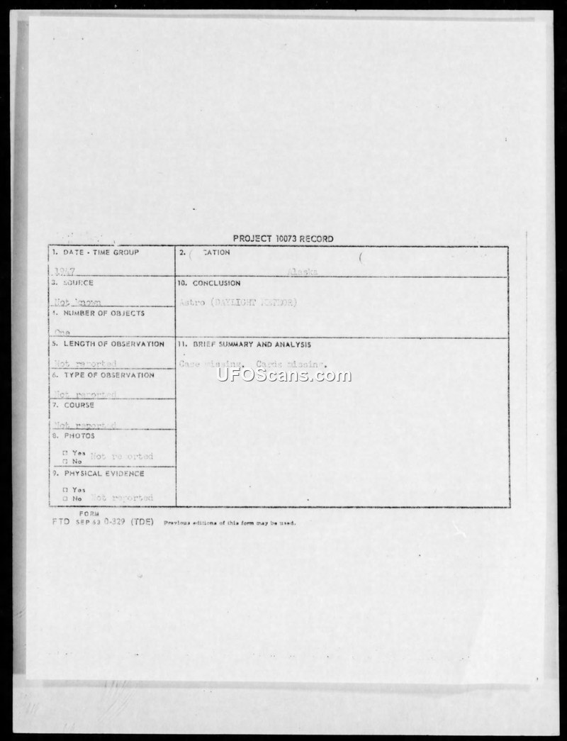Project SIGN Incident #72 Assessment — Alaska, 1947