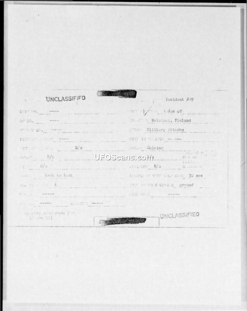 Incident #99 Sighting Report — Vaasa, Finland, 3 January 1948