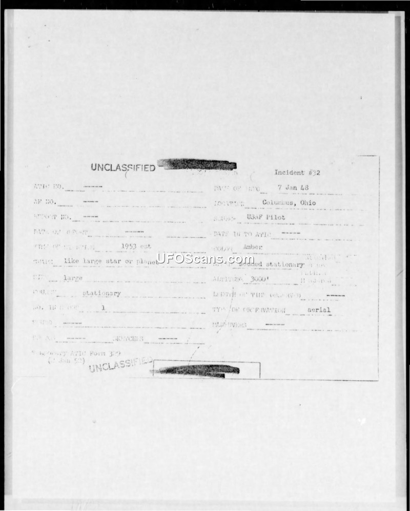 Incident #32 Sighting Report — Columbus, Ohio, 7 Jan 48