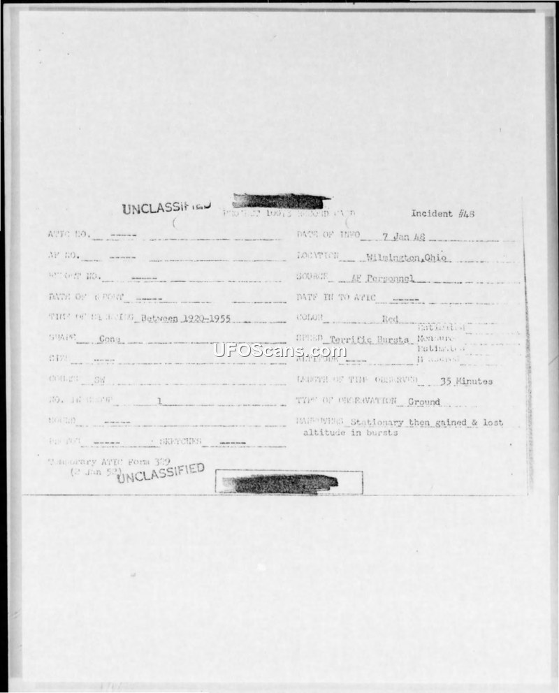 Incident Reports #30, #30a, #30b, #30c, #48, #48a, #48b, #48c, #48d — Columbus and Wilmington, Ohio, 7 January 1948