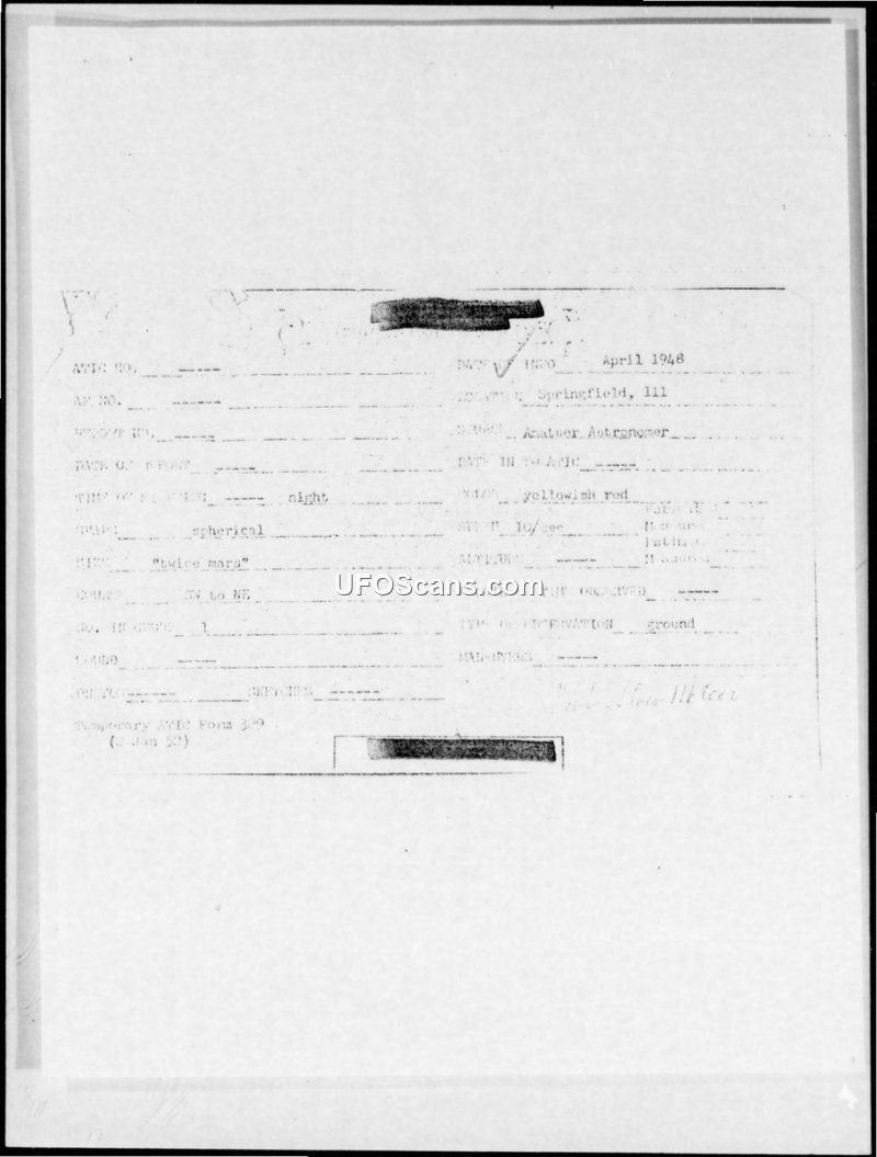An amateur astronomer reported a spherical, yellowish-red object in April 1948. The Air Force suggested it was likely a fireball, though noted the explanation did not cover a second, longer sighting.