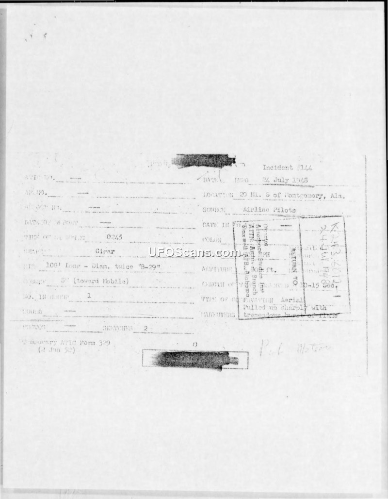 Incident #144 Sighting Report — Montgomery, Alabama, 24 July 1948
