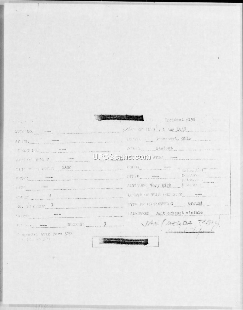 Incident #158 Sighting Report — Groveport, Ohio, 1 August 1948
