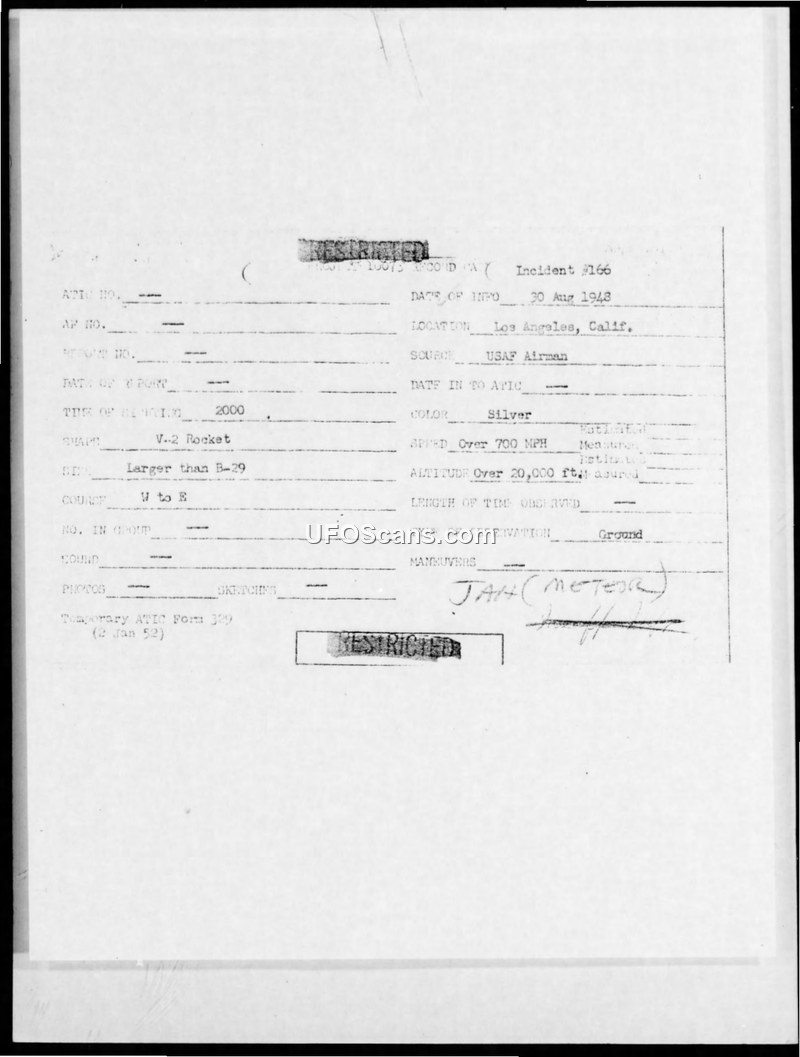 Incident #166 Sighting Report — Los Angeles, California, 30 August 1948
