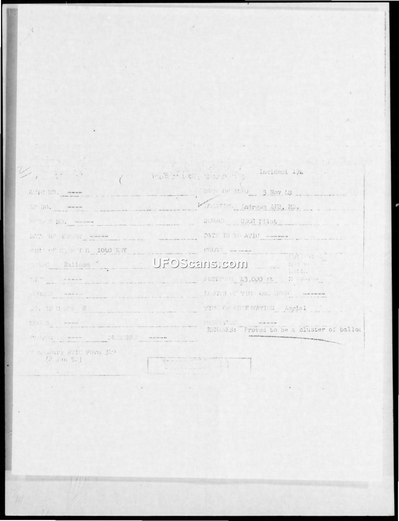Incident #194 Sighting Report — Andrews AFB, MD, 3 November 1948