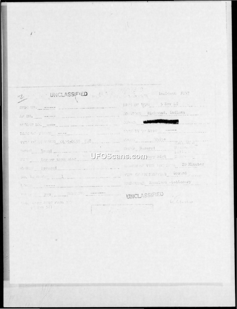 Incident #197 Sighting Report — Richmond, Indiana, November 5, 1948