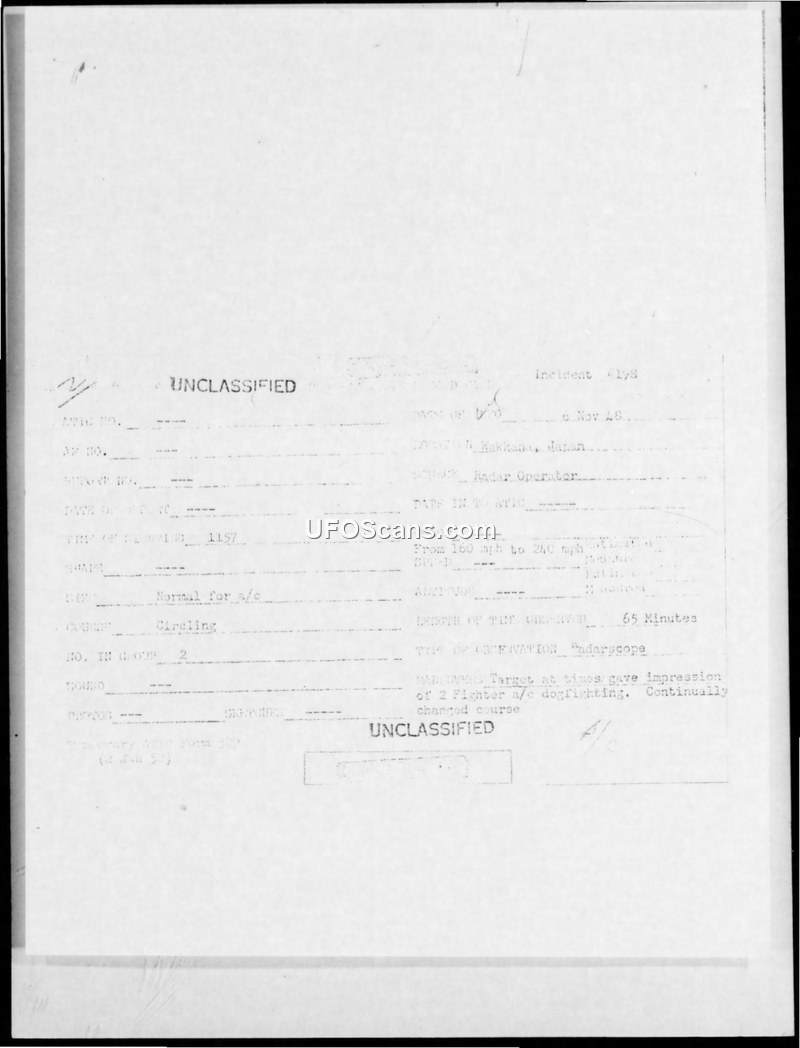 Incident #198 Sighting Report — Wakkanai, Japan, 6 November 1948
