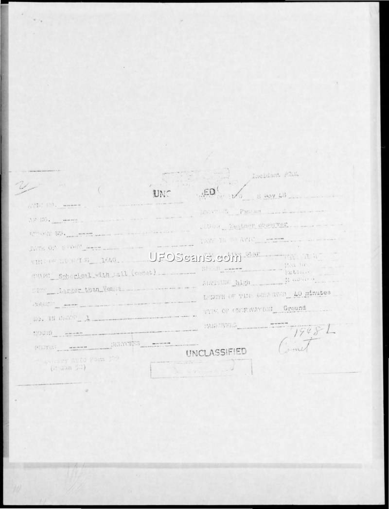 It seems entirely probable that the object sighted in this incident was the comet 1948L