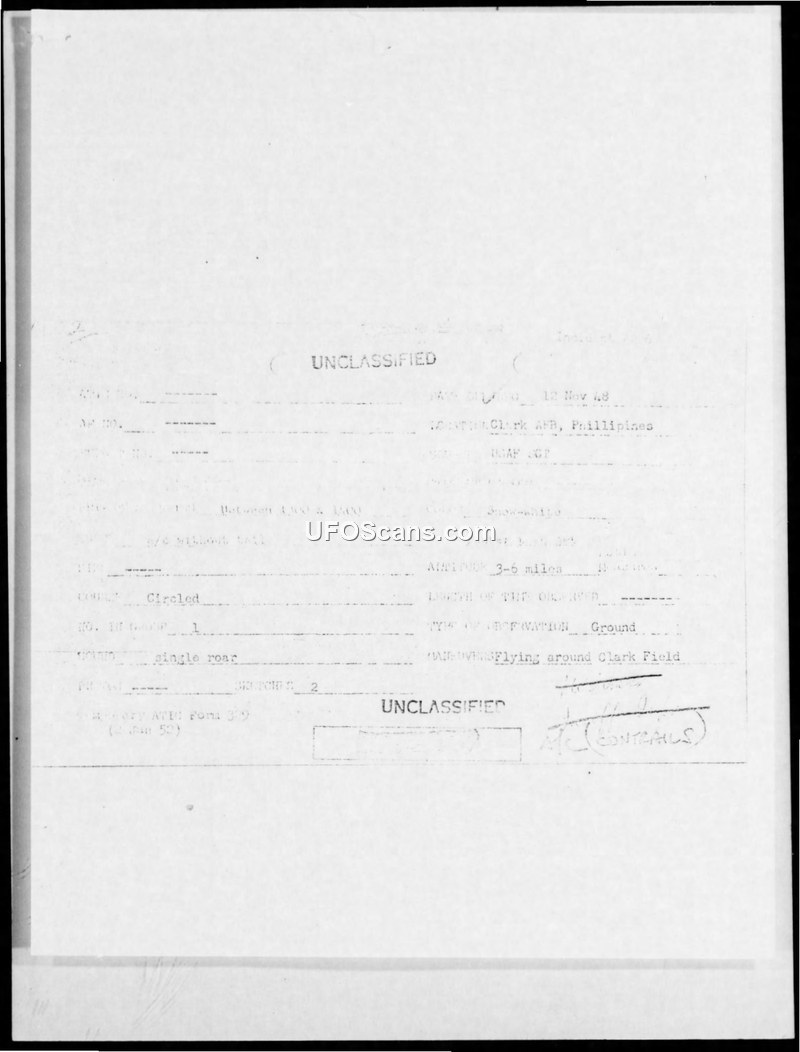 Incident #206 Sighting Report — Clark Air Force Base, Philippines, 12 November 1948
