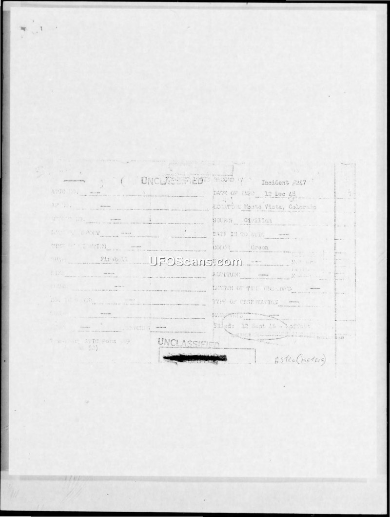 Incident #247 Sighting Report — Monte Vista, Colorado, 12 December 1948