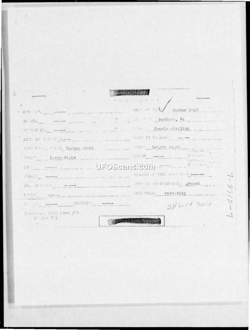 Temporary ATIC Form 329 - Bedford, Va Sighting