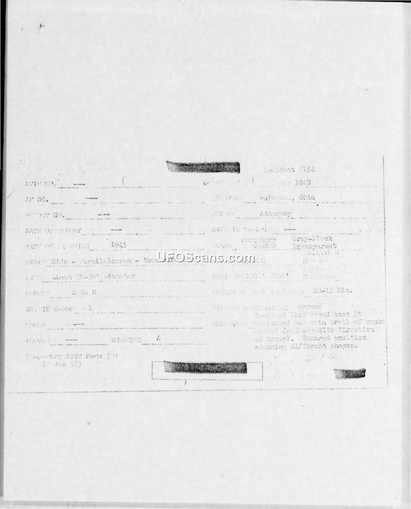 Incident #154 Sighting Report — Columbus, Ohio, 2 August 1948