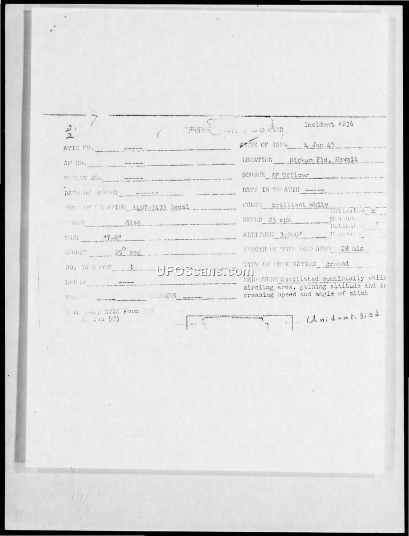 Incident #236 Sighting Report — Hickam Field, Hawaii, 4 January 1949