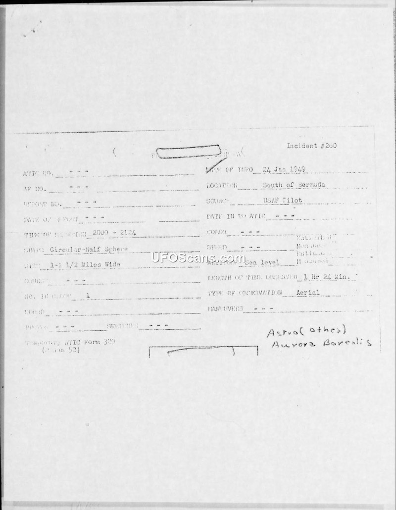 Incident #260 — Sighting Report, South of Bermuda, 24 January 1949