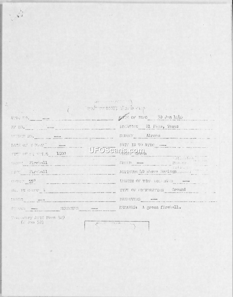 This document is a compilation of reports and correspondence regarding 'Anomalous Luminous Phenomena' (specifically green fireballs) observed in New Mexico and Texas in early 1949. The primary investigation was conducted by the 17th District Office of Special Investigations (OSI) at Kirtland Air Force Base, following reports of a peculiar light observed near Walker Air Force Base on January 30, 1949. Witnesses, including military personnel from the 1900-4 AACS Detachment, described a blue-green light resembling a flare, moving horizontally from North to South at an estimated altitude of 2,000 feet. Some observers reported the object disintegrated into a shower of sparks, and one witness, Sgt. McCrary, described a high-pitched whining sound similar to a blowtorch. The OSI, in collaboration with Dr. Lincoln La Paz of the University of New Mexico, conducted extensive ground and aerial searches throughout southeast New Mexico and West Texas to locate potential impact sites or physical evidence. Despite these efforts, no physical evidence was recovered. The reports consistently link these sightings to meteoritic activity. Dr. La Paz, a recognized expert on meteorites, provided technical guidance and analysis, suggesting that photographic coverage of the impact areas would be beneficial for scientific study. The document includes various incident reports, summaries of information, and correspondence between military headquarters and the OSI, all of which maintain a consistent narrative that these phenomena were meteoritic in nature. The reports emphasize the lack of physical evidence and the difficulty in locating specific impact points due to the vast, sparsely populated terrain. The investigation concluded that the phenomena were meteorites, and the OSI eventually ceased active search operations, noting that the military value of such searches was far exceeded by their scientific importance.
