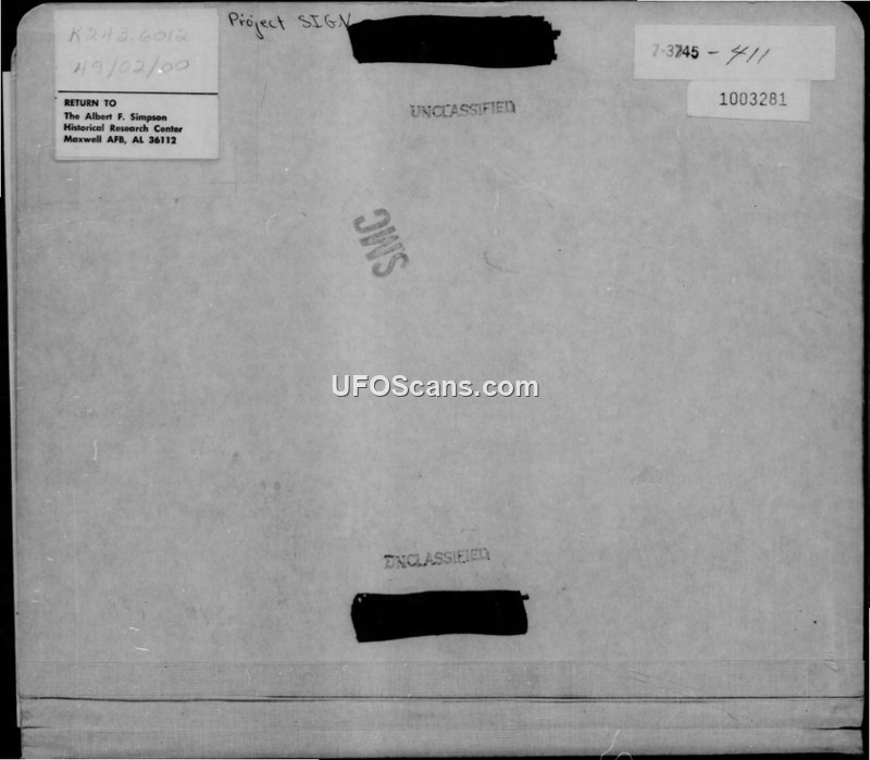 This 1949 Air Materiel Command technical report summarizes the findings of Project Sign, concluding that there is no definitive evidence for the existence of unconventional aircraft. It attributes most sightings to natural phenomena, human error, or conventional technology, while deeming extraterrestrial origins highly improbable.