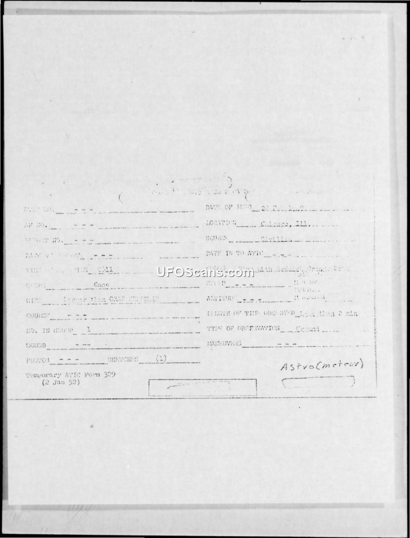 Sighting Report and Correspondence — Chicago, Illinois, February 28, 1949