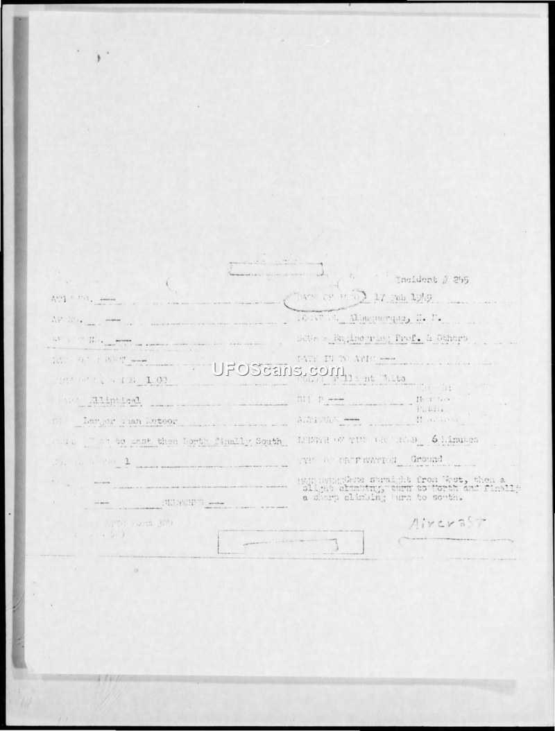 Incident #255 and Incident #273 Sighting Reports — Albuquerque and Los Alamos, New Mexico, February 1949