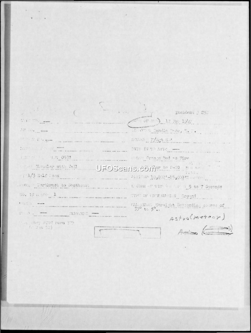 Incident #258 Sighting Report — Sandia Base, New Mexico, 17 February 1949