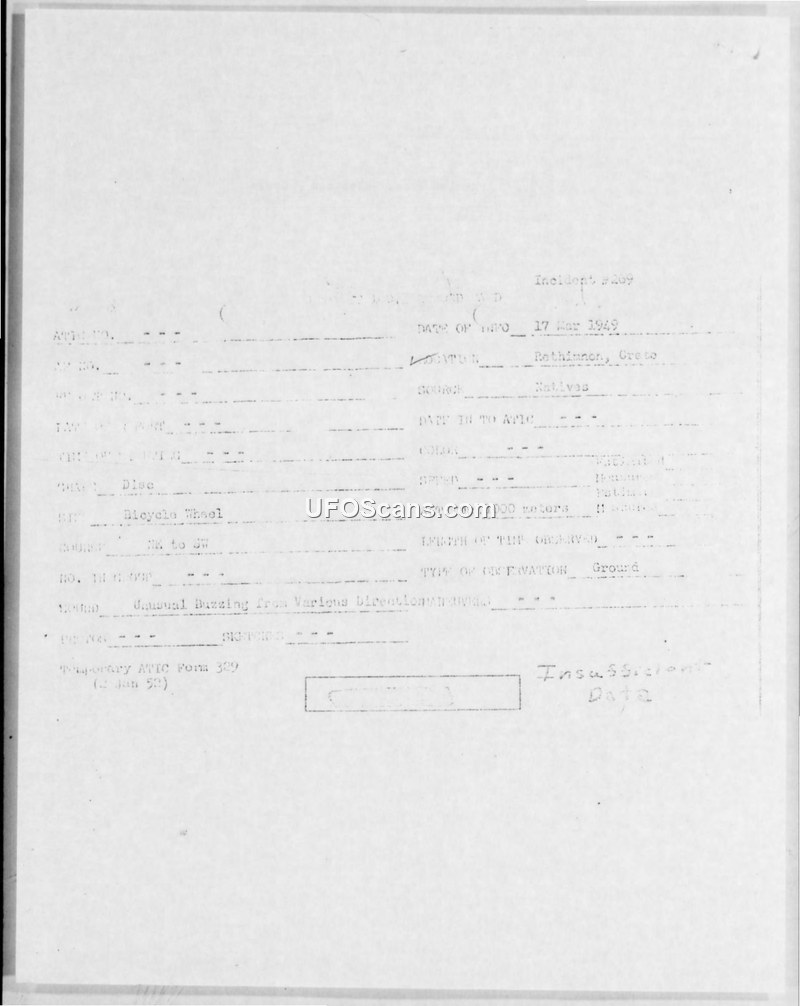 Incident #269 Sighting Report — Rethimnon, Crete, 17 March 1949