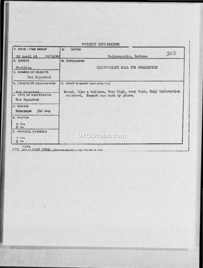 Project 10073 Record: Incident #303 - Indianapolis, Indiana