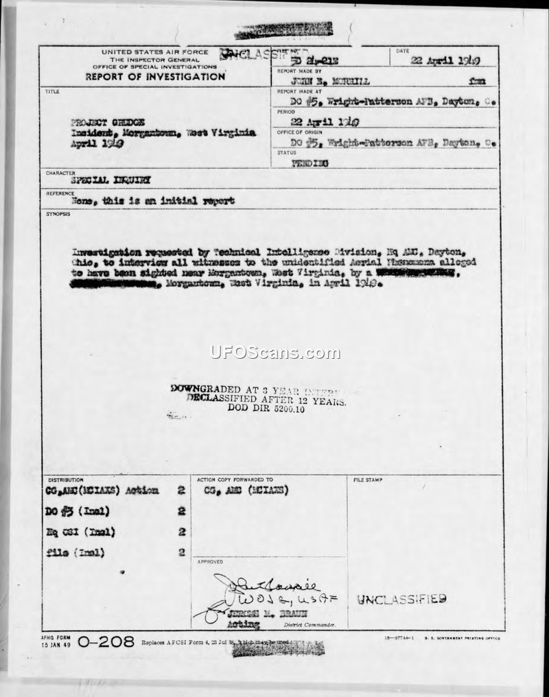 Report of Investigation: Project Grudge Incident, Morgantown, West Virginia, April 1949