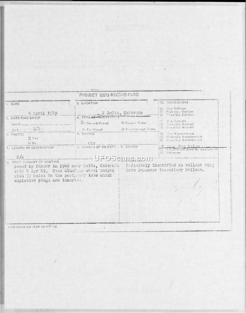 Project 10073 Record Card — Delta, Colorado, April 1949