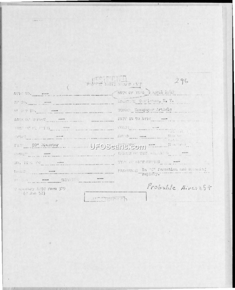 Project Grudge Incident Report — Castleton, New York, 6 April 1949