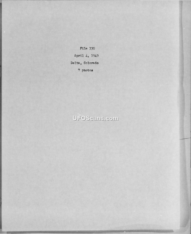 This document, identified as File 330 and associated with OSI Case 24-24, consists of a collection of seven photographs dated April 4, 1949, concerning an incident in Delta, Colorado. The photographs depict a physical object, specifically a curved, mechanical segment that appears to be part of a larger circular structure. The object is shown in various orientations, including close-ups of its construction, which features a series of cylindrical components attached along the inner curve. One photograph shows the object being held by a person, with a caption indicating it was found on the Uncompahgre Plateau. The document provides no narrative report, witness testimony, or official analysis, serving primarily as a visual record of the recovered material. The images include a ruler for scale, suggesting an intent to document the physical dimensions of the object. The file is marked as 'Confidential' and 'Unclassified' in various places, indicating its handling within military intelligence channels during the post-war period.