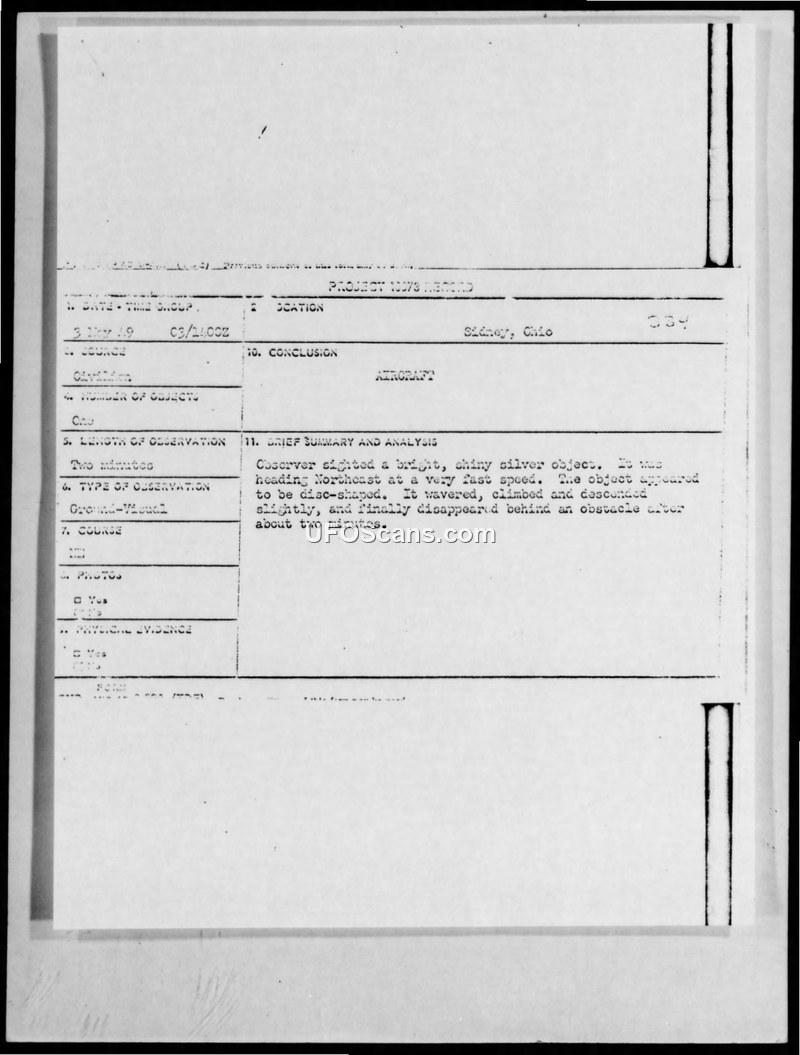 Project Grudge Incident Report 334 — Sidney, Ohio, 3 May 1949