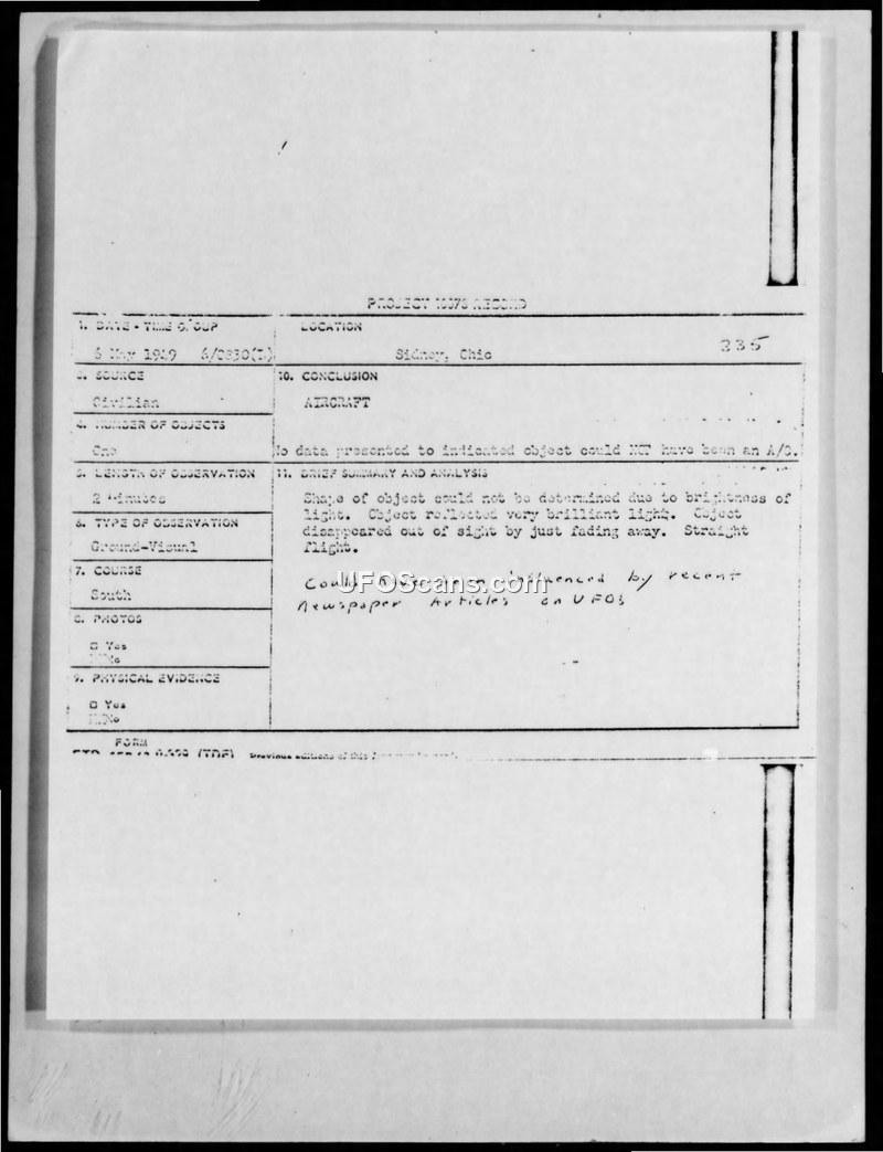 Project Grudge Incident Report #335 - Sidney, Ohio