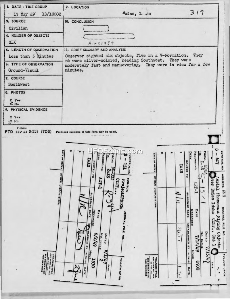 Project Grudge Incident Report #319 — Boise, Idaho, 13 May 1949