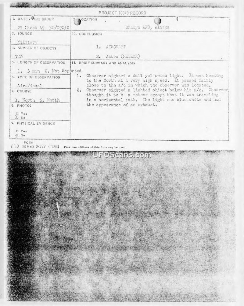 Sighting of Unidentified Flying Object — Shemya, Alaska, March 1949
