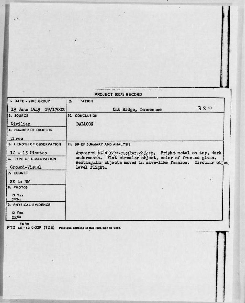 Project Grudge Incident Report — Oak Ridge, Tennessee, 19 June 1949