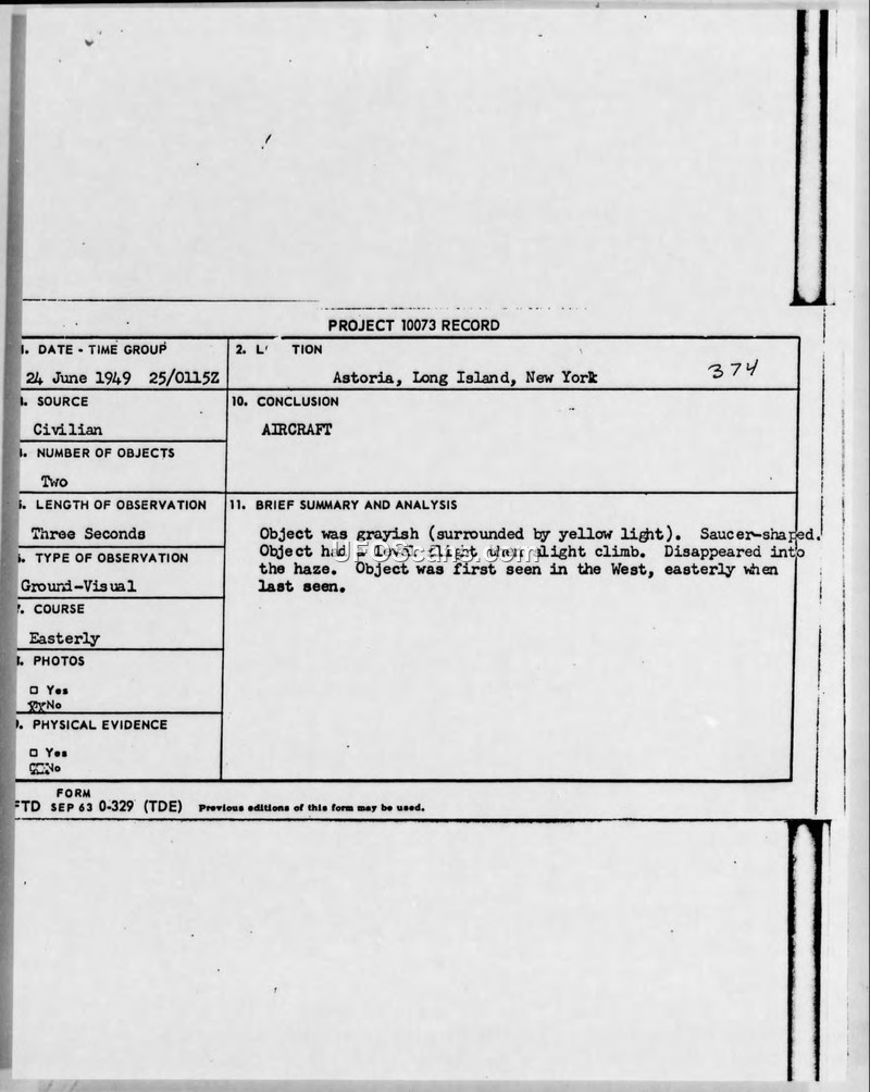 Project Grudge Incident #374 — Astoria, Long Island, New York