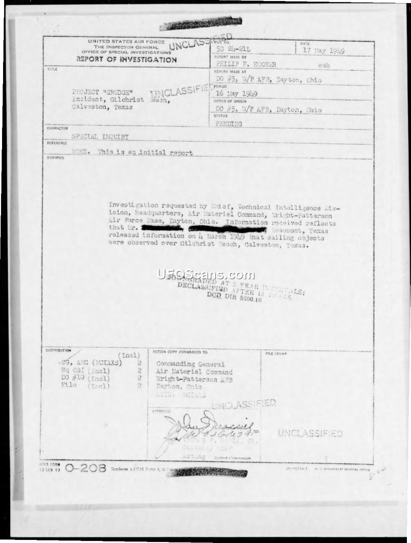 Report of Investigation: Project GRUDGE - Incident, Gilchrist Beach, Galveston, Texas